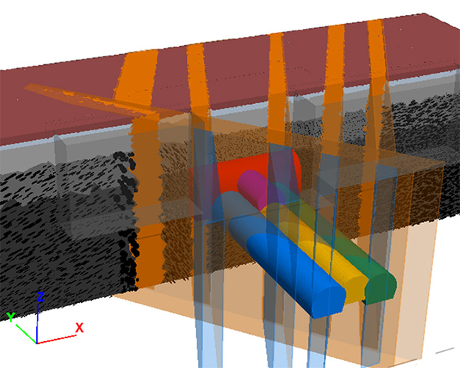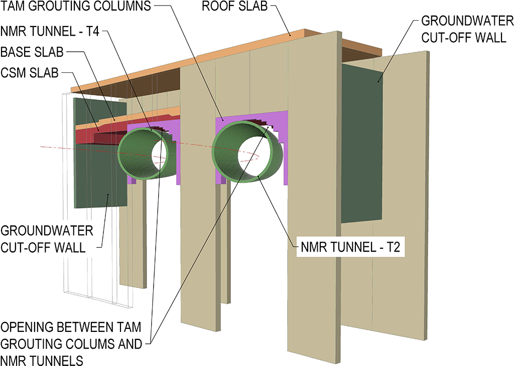 - Detailed design of ground treatment consisting of deep soil mixing, permeation and jet grouting at crossing of existing bored tunnels