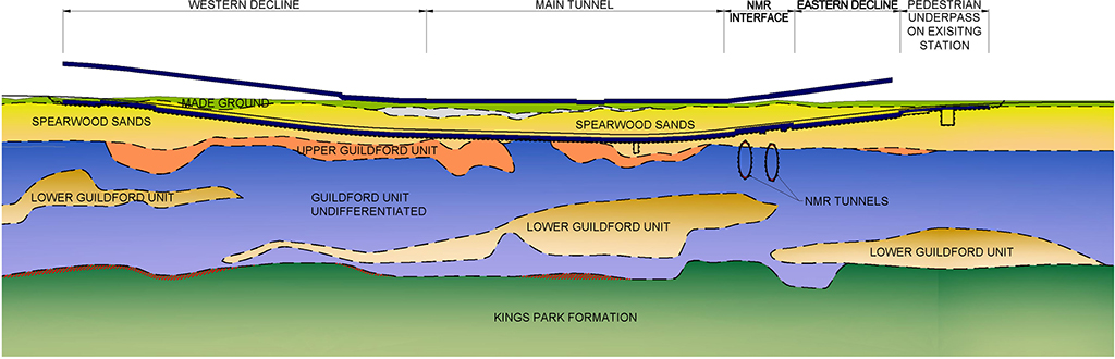 The design and construction of the tunnel works was largely controlled by the high groundwater table and soft ground conditions, close proximity to the existing New Metro Rail (NMR) bored tunnels, and allowance for future medium rise buildings to be constructed above the tunnel.